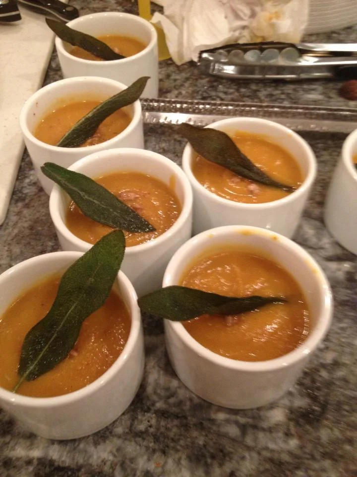 Serve with fried sage leaf and toasted pumpkin seeds for garnish.